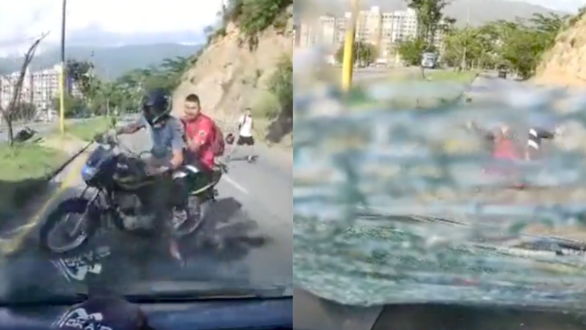 Segundos después, se ve a ambos levantarse con dificultad, mientras revisan si tienen herida alguna. El conductor del vehículo, por su parte, se baja para observar qué pasó. Y al parecer no presentó lesión alguna. Solo, el vidrio panorámico, quedó roto.