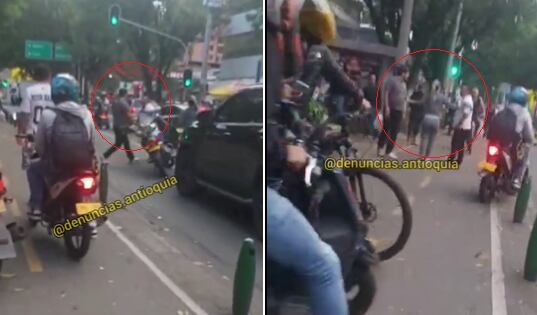 La mujer separaba a los hombres y trataba de llevar a su acompañante de nuevo a la camioneta, mientras el motociclista seguía lanzando insultos. En uno de esos, de nuevo se devolvió para enfrentarlo, pero en ese momento llegaron dos auxiliares de Policía.
