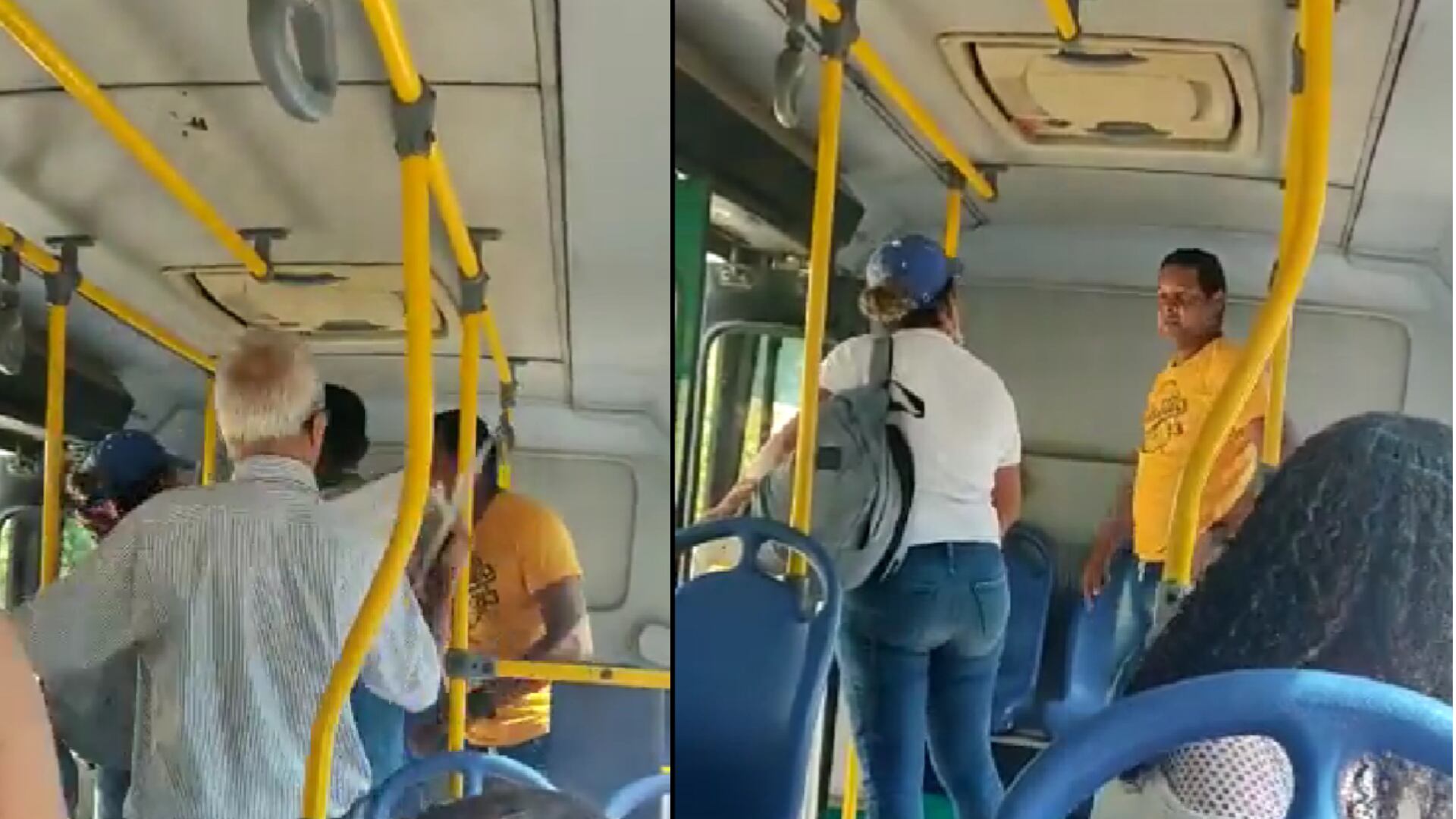 El individuo vestido de camisa amarilla manifestaba que la mujer le había faltado al respeto con sus palabras, y se lo reclamó directamente antes de que ella se bajara del vehículo. Inmediatamente, ella le pegó una cachetada al sujeto, que de igual manera le respondió con varios golpes, y que afortunadamente no continuaron por la intervención de los otros pasajeros.