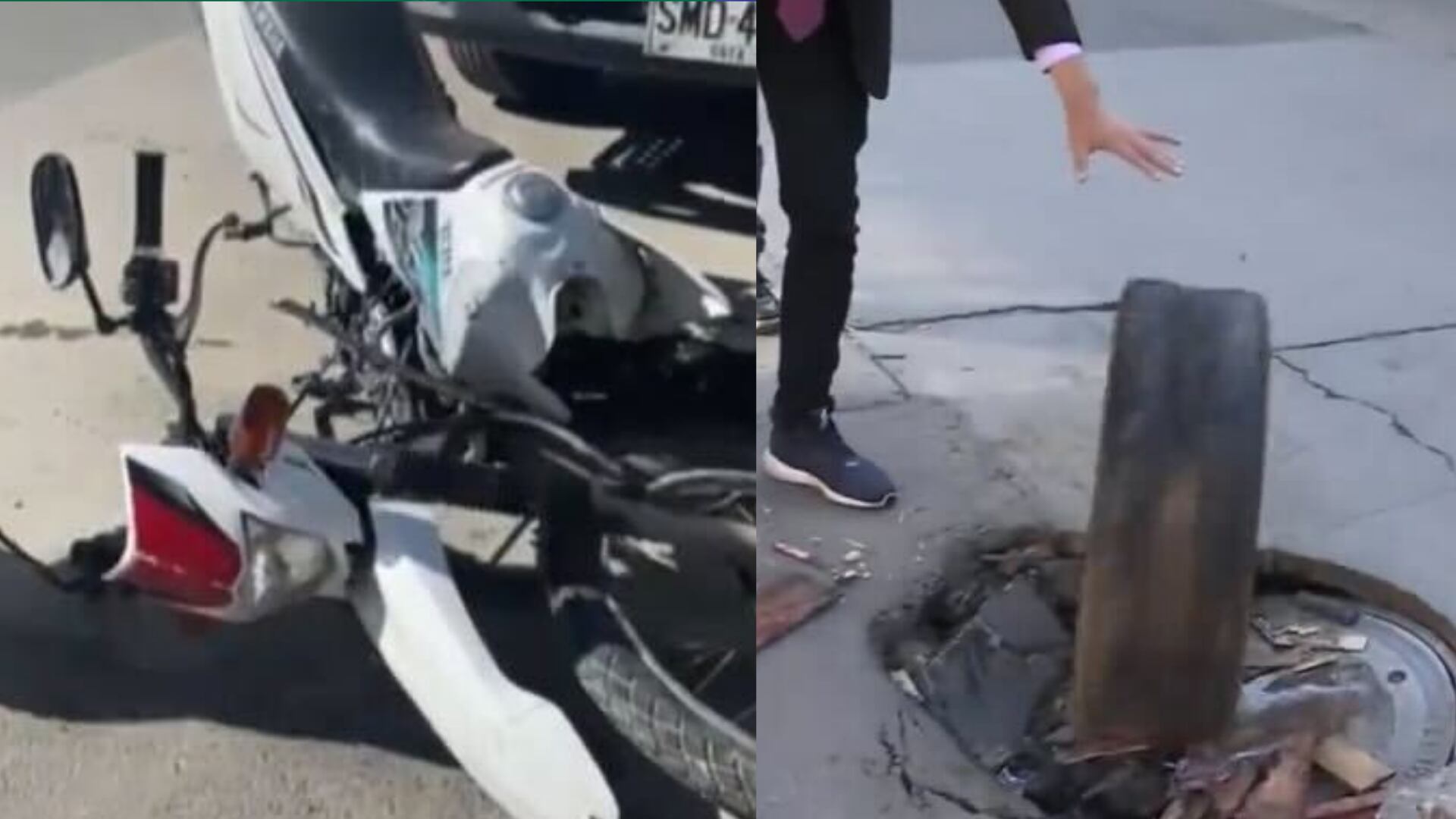 Esta compleja situación ha dejado consigo varios accidentes como el ocurrido hace pocas horas en Bogotá. Un conductor buscó evadir el hueco, pero, en medio de esta maniobra el hombre resultó herido y por su fuera poco, su moto se partió en dos.