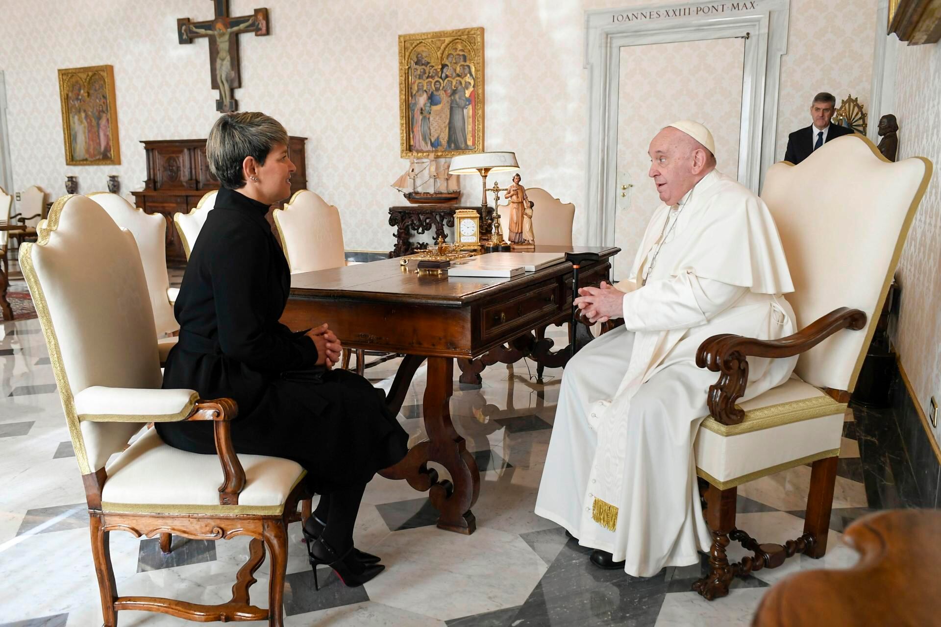 Este sábado, 14 de enero, el papa Francisco recibió en audiencia privada a la primera dama de Colombia, Verónica Alcocer. Aún se desconocen los motivos de esta visita al Vaticano, pero lo cierto es que el encuentro se dio en la biblioteca del Palacio Pontifico, en donde el máximo jerarca de la iglesia Católica recibe a las autoridades y personalidades del mundo.