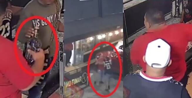 Incluso, en el video de las cámaras de seguridad se puede ver, cómo los hombres, en aparente estado de embriaguez, empujan al guardia, hay un forcejeo y toman una piedra para defenderse del violento guardia quien les disparó dejándolos heridos.