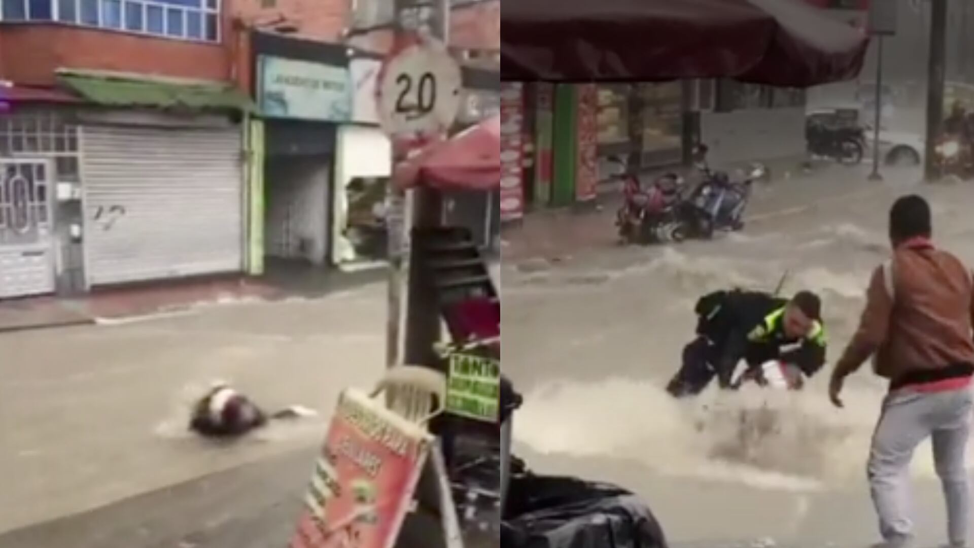 “Realizando labores de patrullaje y control sobre el supermercado Surtimayorista se escuchan voces de auxilio en la vía pública. Al observar se verifica que una ciudadana estaba siendo arrastrada por la corriente de las fuertes lluvias. Así, sin pensarlo dos veces y bajo el principio de mi misionalidad decidí ir en su rescato. Gracias a Dios se logró salvaguardar la vida e integridad de esta mujer. Es un honor ser policía”, narró el uniformado, Durán.