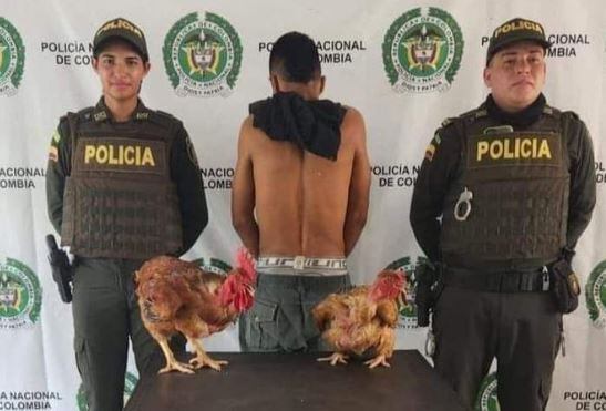 En las últimas horas a través de las redes sociales se conoció una fotografía en la que aparece un sujeto capturado por uniformados de la Policía Nacional porque se habría robado dos gallinas criollas. La imagen generó todo tipo de reacciones y burlas. El hecho se registró en Puerto López, Meta.