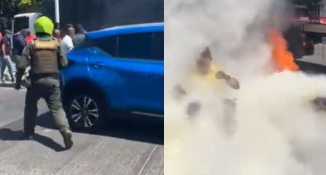El motociclista quedó en la acera del semáforo tendido en llamas, mientras, por fortuna, recibió la solidaridad de los demás choferes quienes sacaron sus extinguidores para incendios que usan para estas emergencias y pudieron apagar las llamas que envolvían las piernas del hombre.