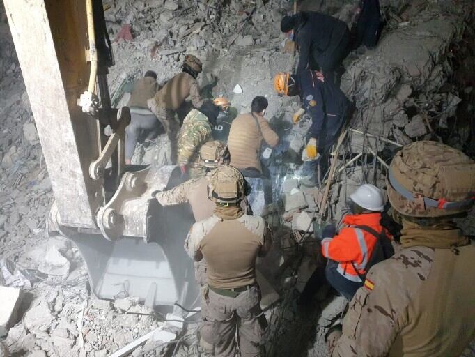 Infantes de Marina participan en el rescate de un niño tras el terremoto en Turquía. (MINISTERIO DE DEFENSA/Europa Press)