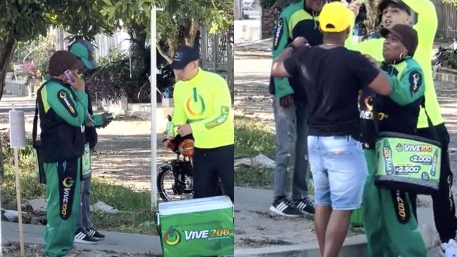 De acuerdo con el clip compartido en ‘TikTok’, la pareja se encontraba en una esquina vendiendo dicho producto. En cuestión de segundos, otro presunto vendedor de Vive 100 se acerca con el fin de saludarlos, pero se queda y hace presencia en el lugar, lo que para uno de los vendedores habría causado molestia.