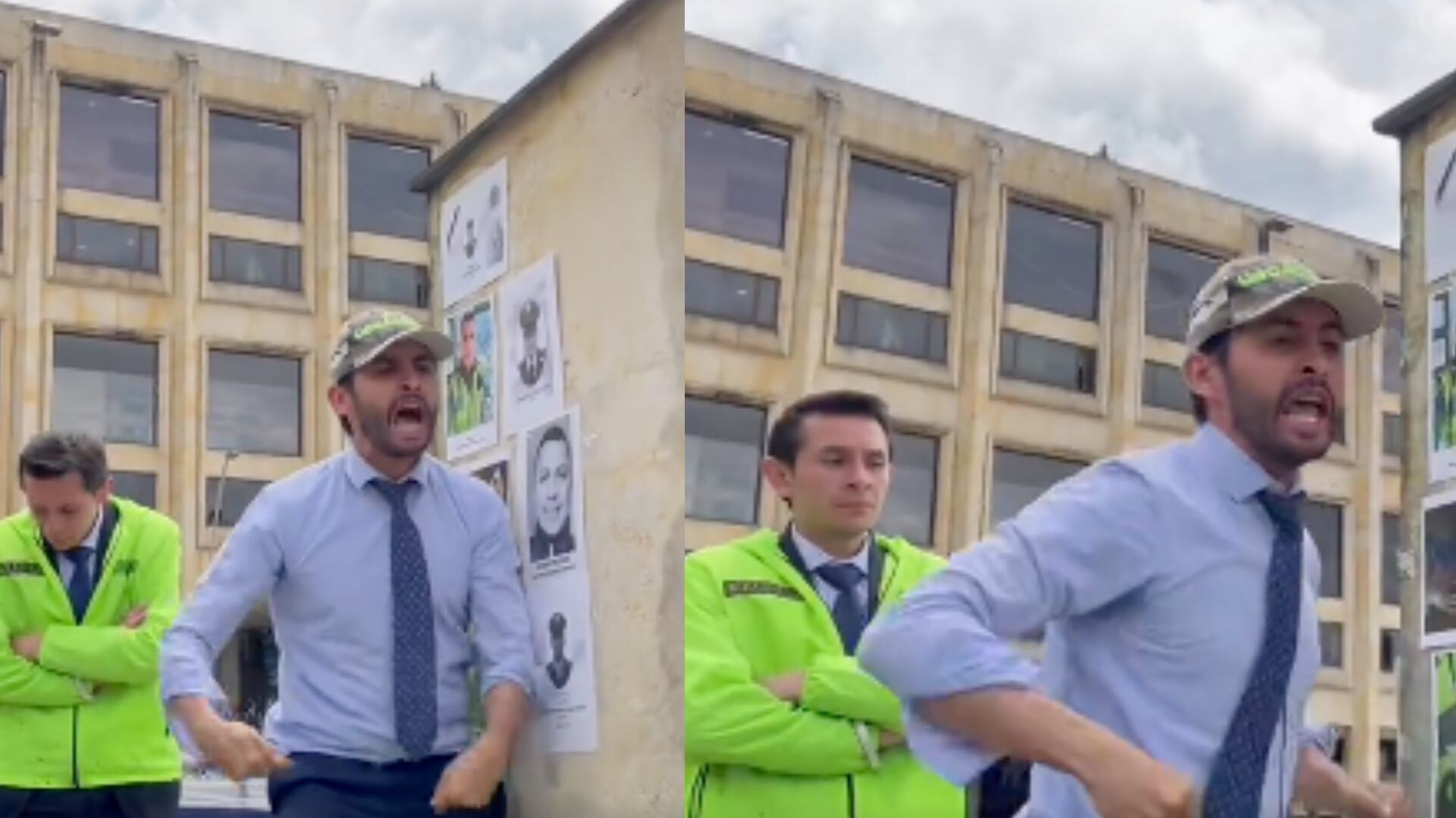¿Su reclamo? El asesinato de miembros de la Fuerza Pública. Sin embargo, en la grabación se le ve bastante alterado, con ira y exaltado, mientras le grita -irónicamente- a un uniformado de la Policía.