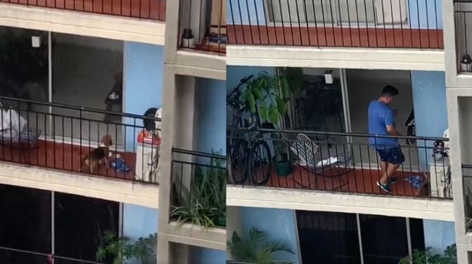 Además, hay otra grabación en la que se puede ver el cruento maltrato que recibe el cachorro, pues un hombre que barre el balcón lo golpea con la punta de la escoba. Además, no bastándole con este golpe, acude a pisarlo luego y el cachorro en medio de esta situación incluso llora, pues la usuaria dice que fue testigo de su llanto.