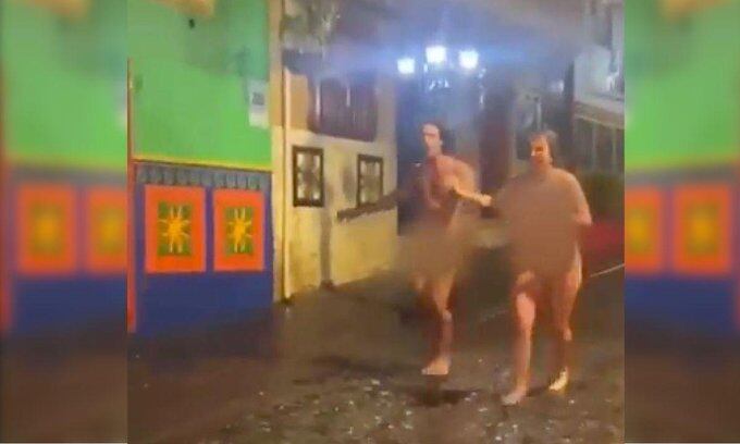 Una pareja de turistas extranjeros fueron grabados mientras corrían desnudos en las calles del turístico municipio de Guatapé en Antioquia. Se trata de un hombre y una mujer que resultaron captados mientras, jugaban y se divertían, pasado por encima de otro grupo de personas, quienes estaban vestidas y acostadas, en una de las emblemáticas calles de Guatapé.