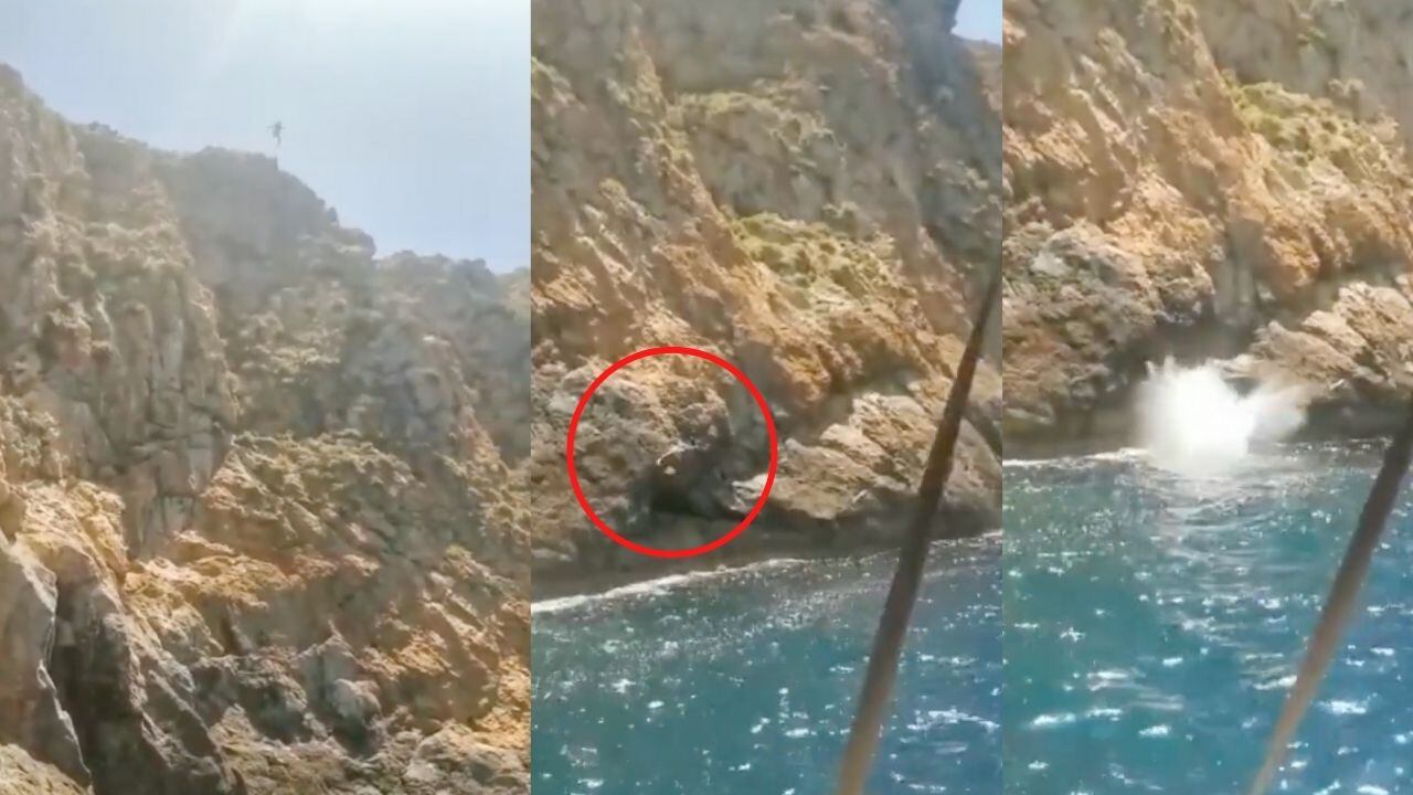 Tras pensar el salto por algún momento, el hombre tomó impulso y saltó desde lo más alto de las rocas. Lamentablemente mientras caía, el turista se impactó con una de las rocas antes de tocar el mar.