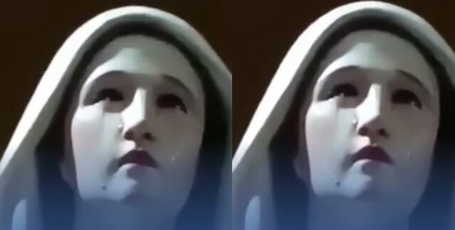 En el video se puede ver cómo la imagen, una figura de la virgen vestida de blanco con azul está derramando lágrimas, un suceso que se ha registrado en otras épocas y que tiene sorprendida a la comunidad católica en esta población.