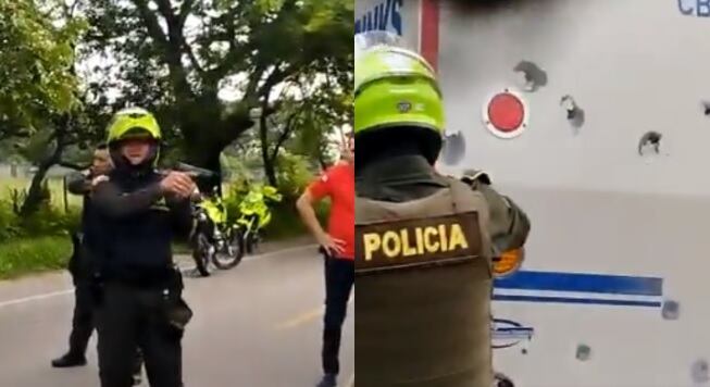 En un video que muestra los momentos de tensión sobre esta vía, se puede observar el vehículo con varios disparos y acorralado por la Policía, mientras intentan sacar a los delincuentes, quienes se encuentran adentro del camión.