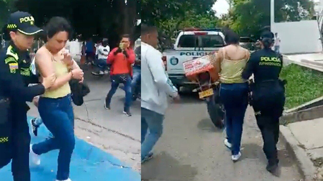En uno de los videos se observa cuando la Policía conduce a una de las mujeres y la sube a una patrulla. Allí la comunidad les gritó a las capturadas “vayan a trabajar”.