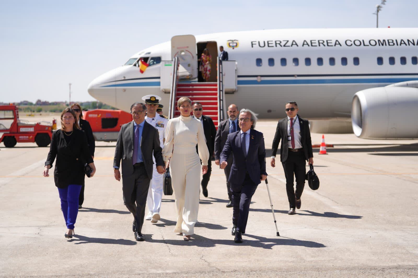 Luego de su polémico discurso desde una de las ventanas en la Casa de Nariño, el presidente Gustavo Petro se subió al avión presidencial para viajar a España en compañía de su esposa, Verónica Alcocer, y varios de sus ministros.