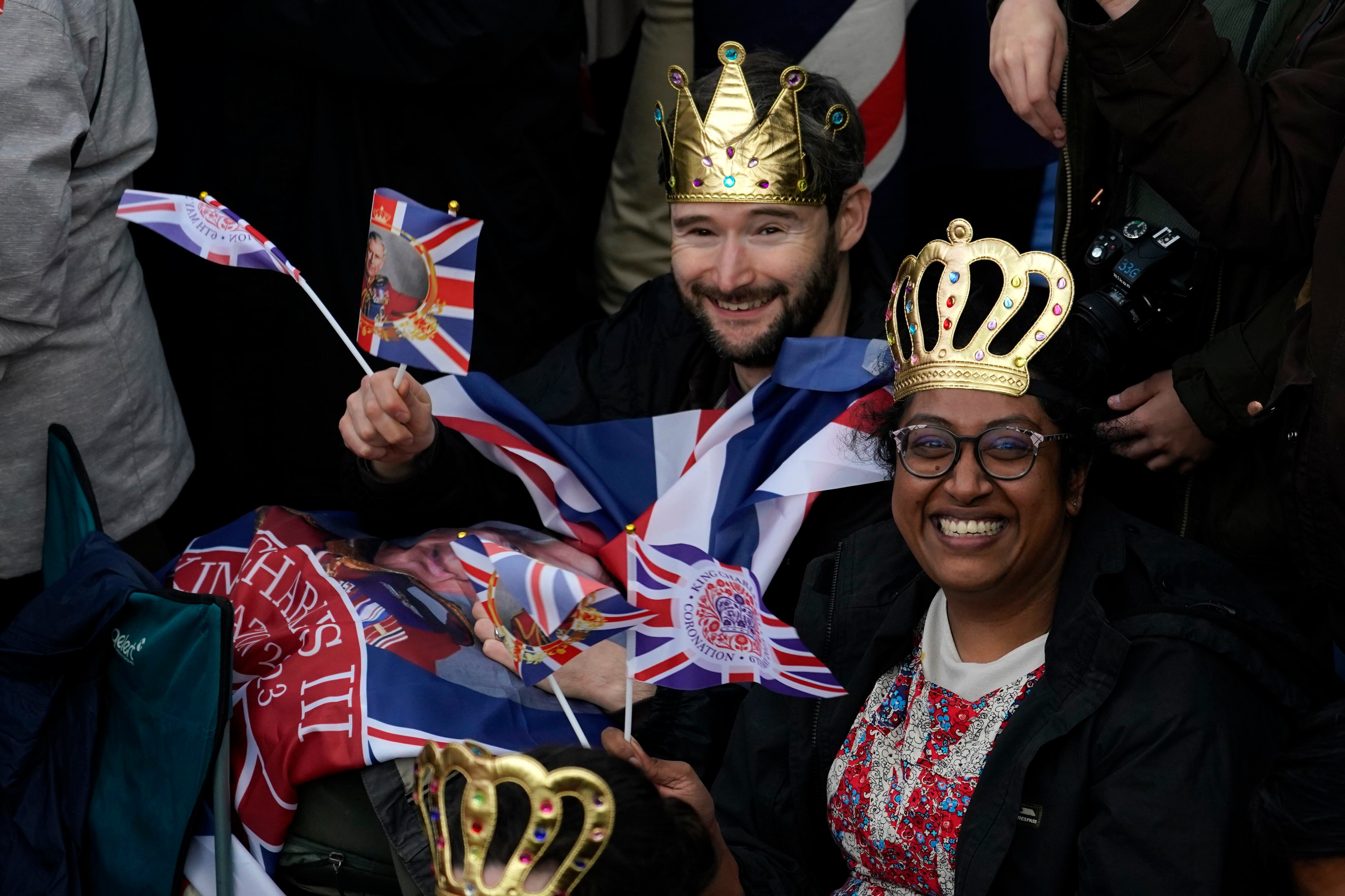 Miles de personas de todo el Reino Unido y de todo el mundo acamparon durante la noche a lo largo de una ruta de 2 kilómetros (1,3 millas) para ver al monarca mientras viaja desde el Palacio de Buckingham hasta la abadía medieval, donde los reyes han sido coronados durante un milenio.