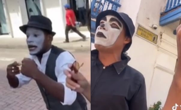 Un curioso video en Tik Tok fue compartido en redes. Este usuario grabó la partícular pelea entre dos mimos que se dio de una forma “muy verbal” en pleno centro histórico de Cartagena. Uno de los mimos le reclamaba al otro que se maquillaba su rostro y usaba un atuendo similiar a un mimo, pero no representaba este arte como tal.
