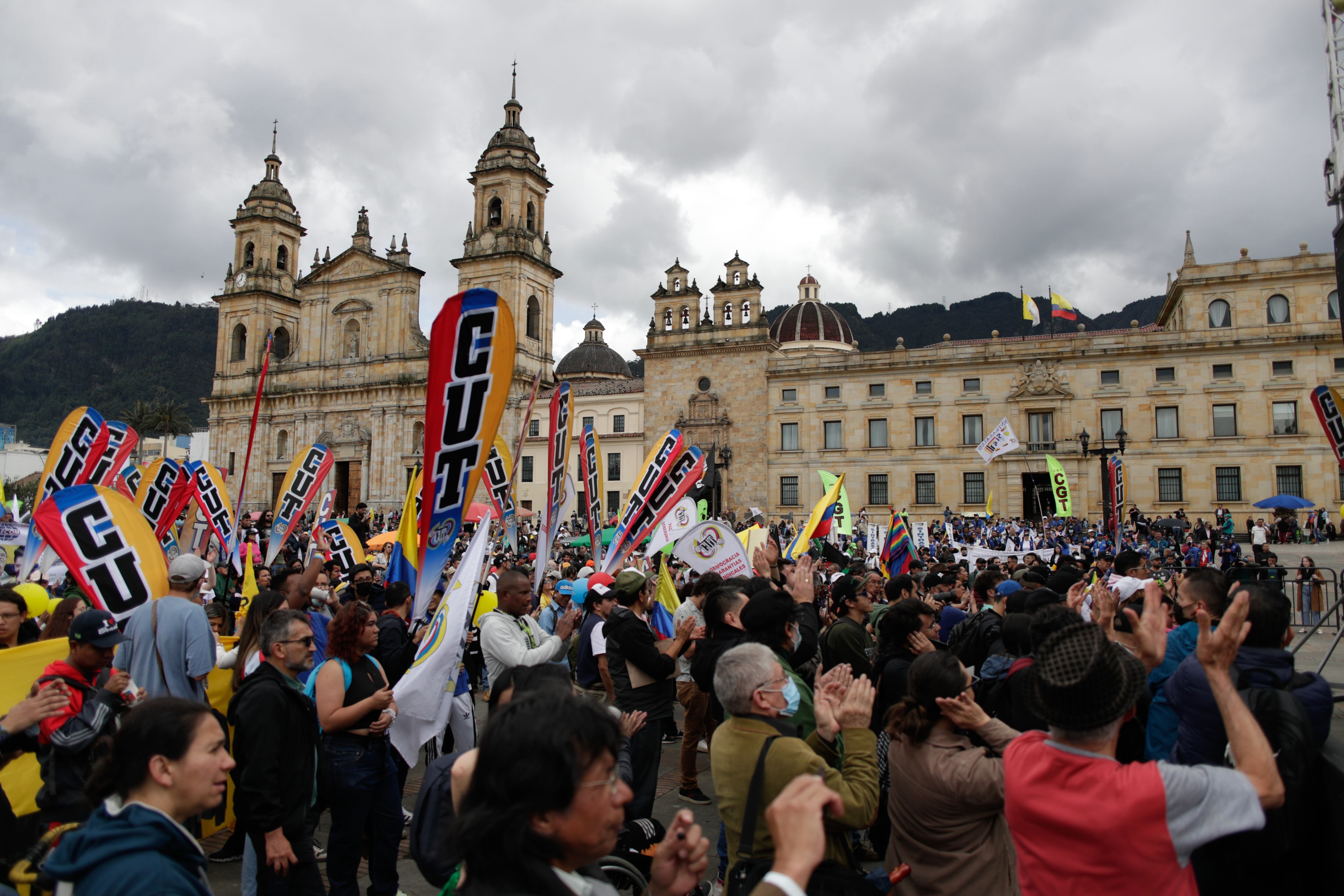 Quienes están al frente de la convocatoria llamada “Toma de Bogotá por las reformas sociales” son la Central Unitaria de Trabajadores (CUT), la Confederación General del Trabajo (CGT), la Confederación de Trabajadores de Colombia (CTC), la Confederación de Pensionados de Colombia (CPC) y la Confederación Democrática de Pensionados (CDP).