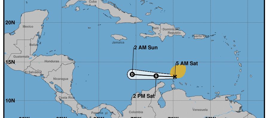 La tormenta tropical Bret continúa en el oriente del mar Caribe según el último reporte del Centro Nacional de Huracanes.