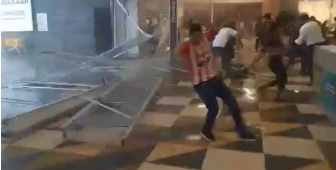Varias personas que se encontraban al interior de este centro comercial de Riohacha, presenciaron el momento en el que una de las puertas de acceso de cristal, se caen aparatosamente, como resultado de los fuertes vientos de una tormenta.