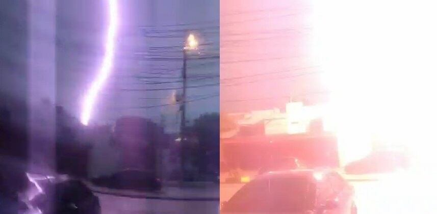 El impresionante momento quedó grabado en un video aficionado cuando una persona, que se encontraba con su celular mostrando el tráfico vehicular en la vía y la inundación provocada por la lluvia, logró captar el momento exacto de la descarga eléctrica que incluso encendió unas llamas en el sitio exacto donde cayó.