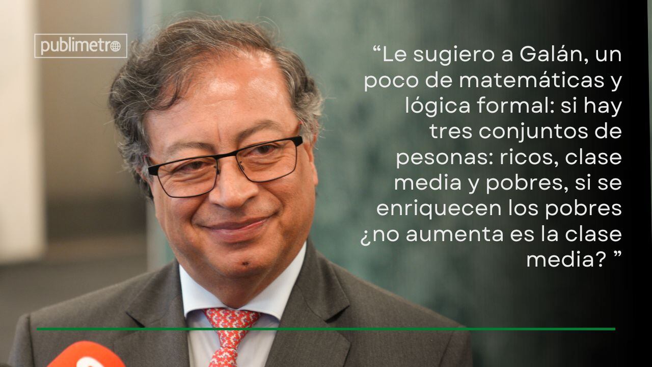 El comentario de Galán no cayó para nada bien al mandatario que inmediatamente reaccionó de forma directa atacando al político y explicándole que no tenía sentido lo que decía: “Le sugiero a Galán, un poco de matemáticas y lógica formal: si hay tres conjuntos de personas: ricos, clase media y pobres, si se enriquecen los pobres ¿no aumenta es la clase media? Entonces, ¿de dónde deduce Galán que si se enriquece a los pobres se acaba la clase media?”, escribió.