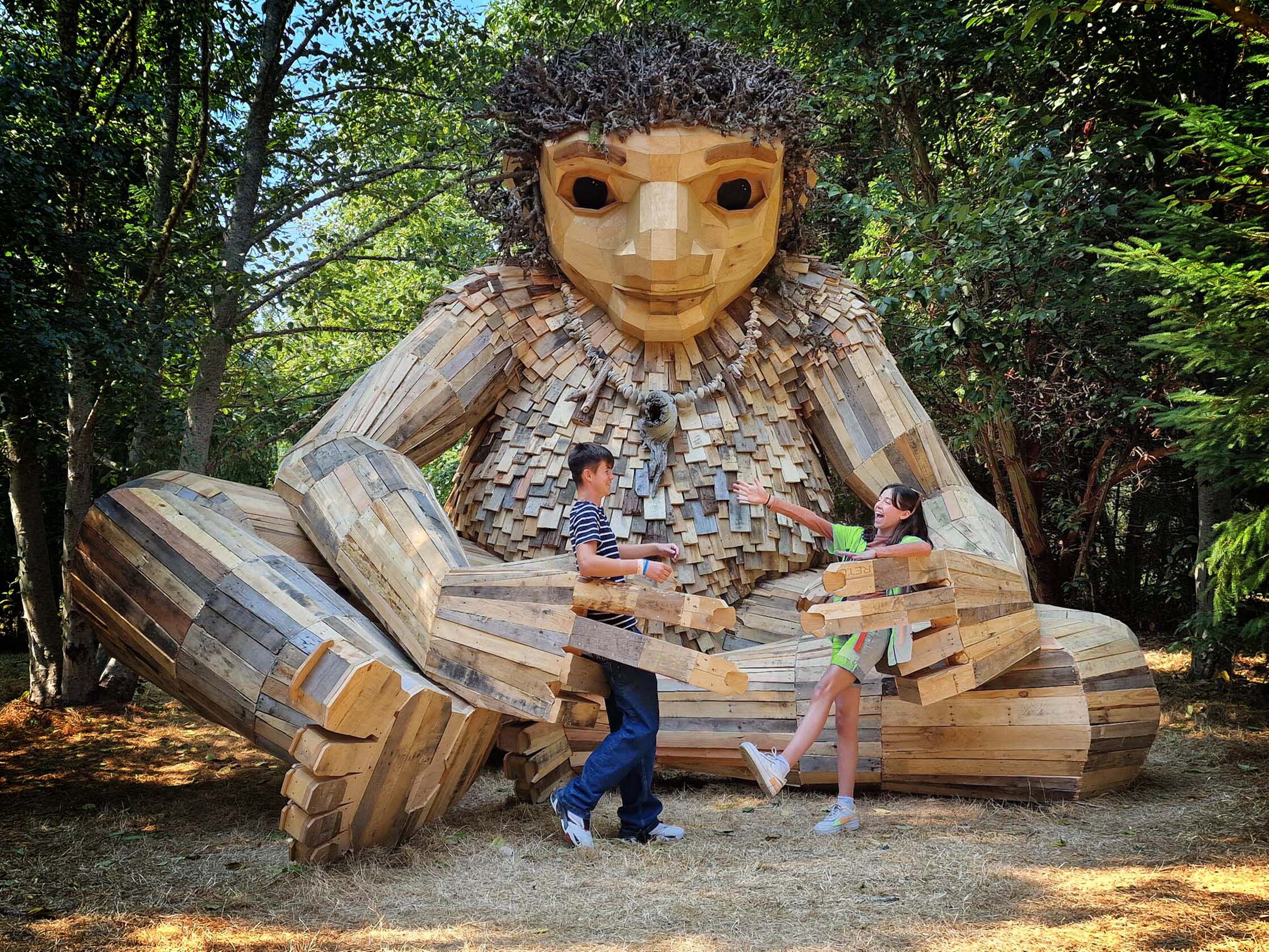 Enormes trolls creados por el artista danés del reciclaje y activista climático Thomas Dambo están invadiendo Estados Unidos junto con 22 constructores de estas criaturas. Dambo ha pasado el verano creando esculturas que se extienden desde la costa este hasta la costa oeste, empezando en Nueva Jersey y terminando en el estado de Washington.
