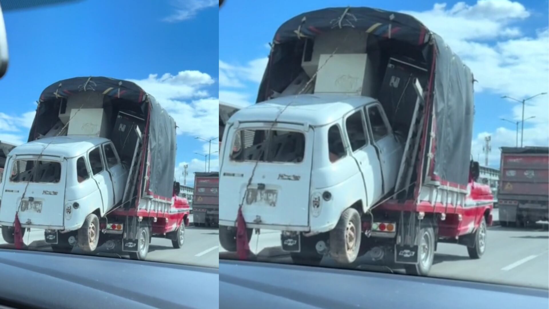 En la red social TikTok viralizó una ‘joyita’ que es considerada para muchos como una ‘colombianada’, y para otros un peligro para el resto de actores viales. Se trata de un videoclip en el que se observa a un camión llevar un trasteo, en el que resalta un juguete que no debería ir transportando en el vehículo, un Renault 4. Aunque el suceso causó varias carcajadas, también sirvió como halón de orejas para los miembros de la policía de tránsito.