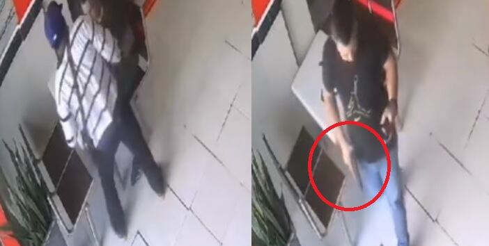 Los videos que se dieron a conocer mostraban cómo el ladrón ingresa al negocio y se dirige directamente hasta donde está un hombre de suéter negro, pantalón jean y zapatos tenis negros.