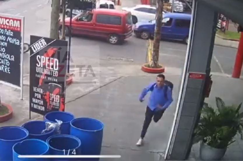En las imágenes se observa que el hombre viene corriendo tranquilamente, cuando de la nada un hombre baja de un auto, advierte a otras personas cercanas y procede a correr tras él junto a varios transeúntes que salieron a toda prisa.