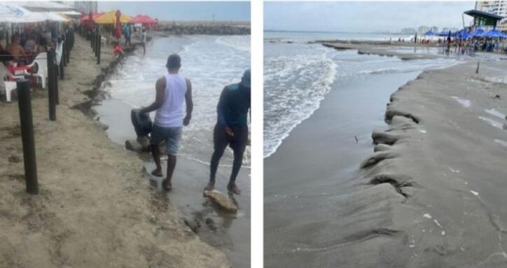 Las fuertes olas que están azotando por estos días las playas del norte de Colombia, un fenómeno conocido como ‘mar de leva’, ya han causado estragos y tragedias en varias partes. Ahora, el mar de leva que golpeó las playas de Cartagena terminó tragándose gran parte de la tierra donde usualmente se bronceaban los turistas.