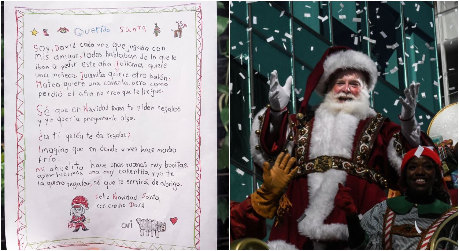 David, un niño de 8 años, logró cautivar los corazones de los colombianos con una emotiva carta que escribió a Santa Claus en la que no le pide regalos y, por el contrario, le dice que le quiere dar uno a él. Para esta fecha, en la que es tradición que los niños le escriban una carta a Santa haciendo deseos de todo tipo, este pequeño de Boyacá dejó ver la grandeza de su corazón.