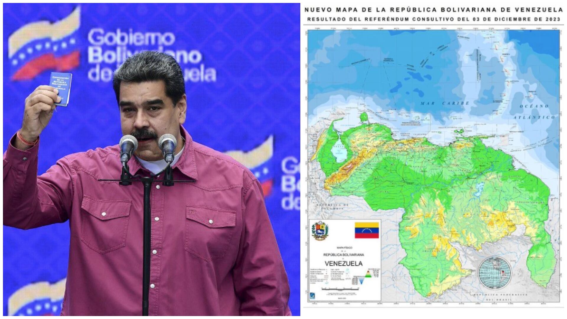 A través de su cuenta de X el presidente Maduro compartió la imagen del que sería el nuevo mapa de Venezuela en el que se adjudica el estado de Guyana Esquiba como parte del territorio bolivariano. Adicionalmente aseguró que ordenó que este sea el mapa que se enseñe en los colegios e instituciones educativas.
