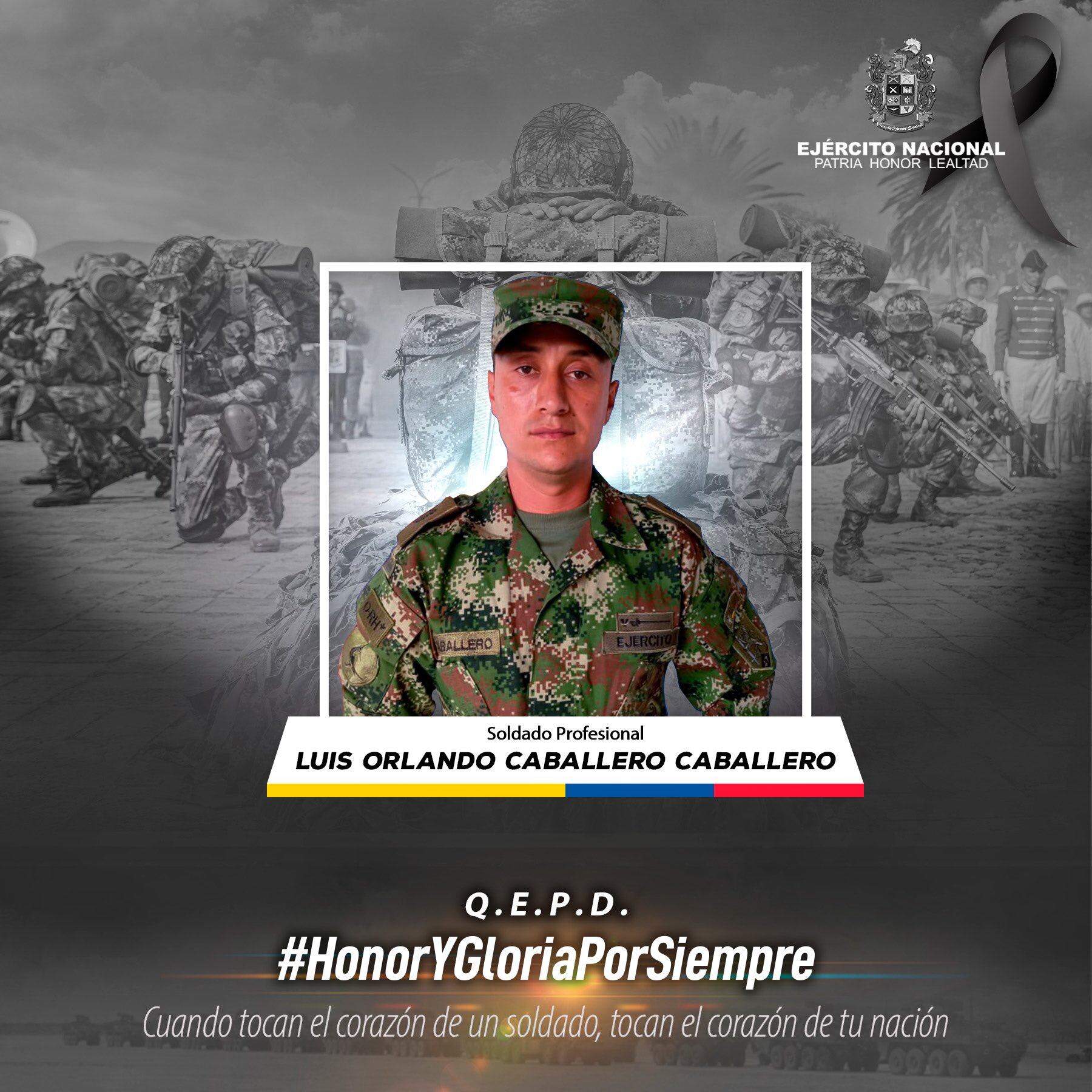 Dentro del comunicado emitido por el Ejército Nacional, la institución lamentó la pérdida del soldado Caballero, “quien ofrendó su vida en cumplimiento del deber, y expresa sus más sentidas condolencias a los familiares y amigos”.