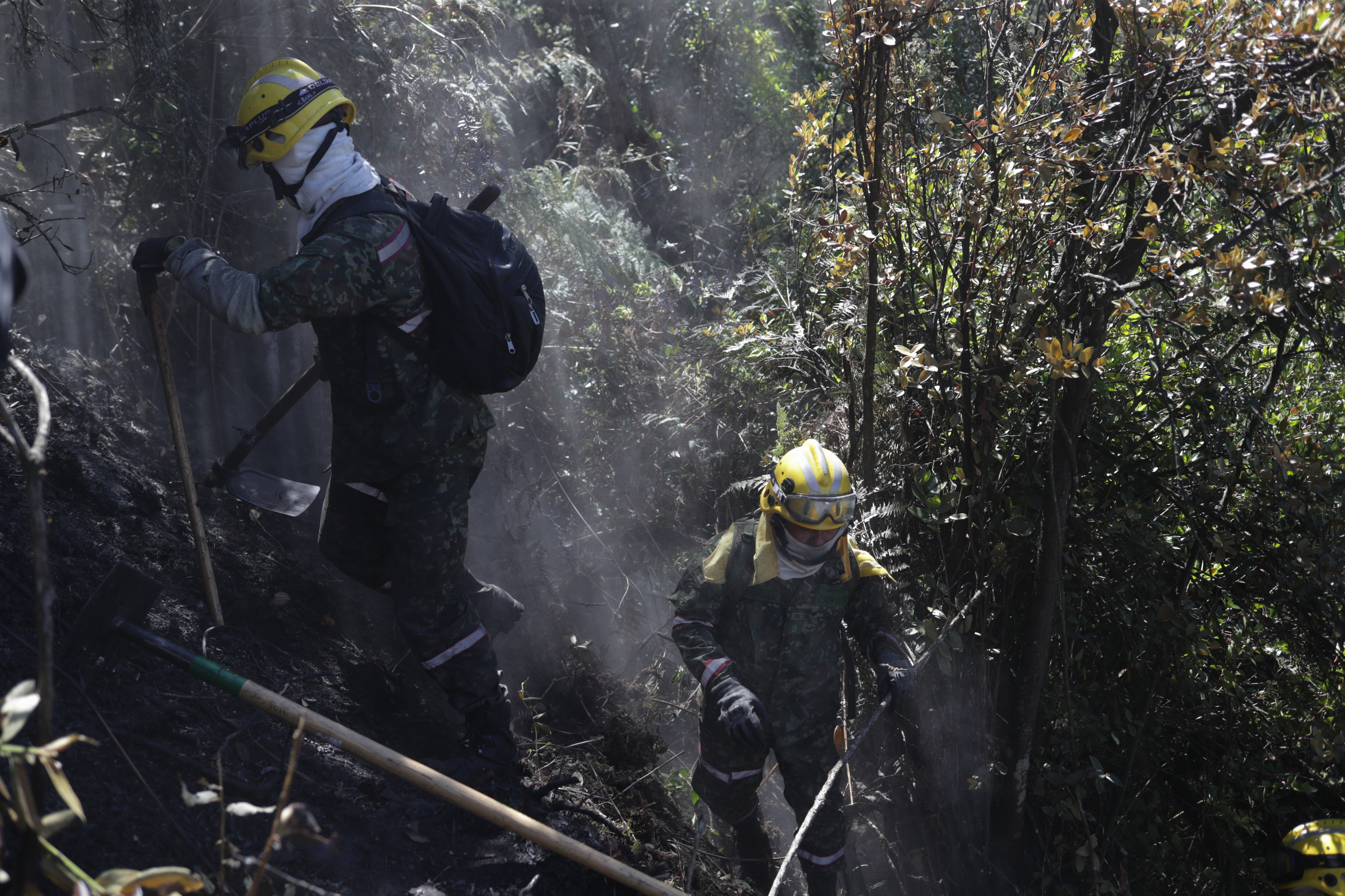 2. Cerro El Cable: esta es la situación más compleja actualmente. 120 personas trabajaron durante la noche y se controló el crecimiento en el costado sur. Con 3 máquinas se está atendiendo la situación: 1 en el barrio Pardo Rubio y otras 2 en el costado sur. Más de 360 personas trabajarán durante todo el día para controlar el fuego y contaremos con el apoyo de 3 helicópteros y 1 avión. Las antenas están protegidas.