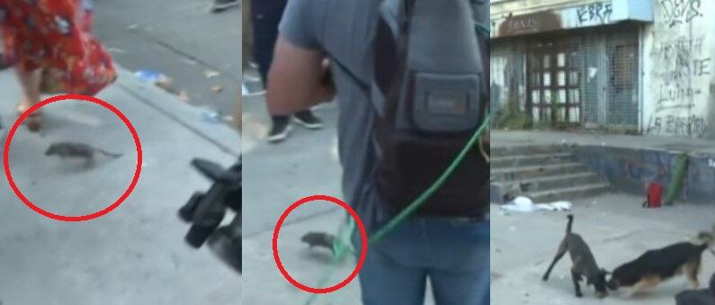 La presencia del roedor dispersó a los reporteros, quienes abandonaron momentáneamente la interacción con Macri para alejarse del inesperado visitante. La rata iba saltando entre los pies de la prensa, generando caos en la escena. La situación alcanzó su punto álgido cuando una persona pateó a la rata como si fuera un balón en movimiento, y dos perros se unieron rápidamente a la escena.