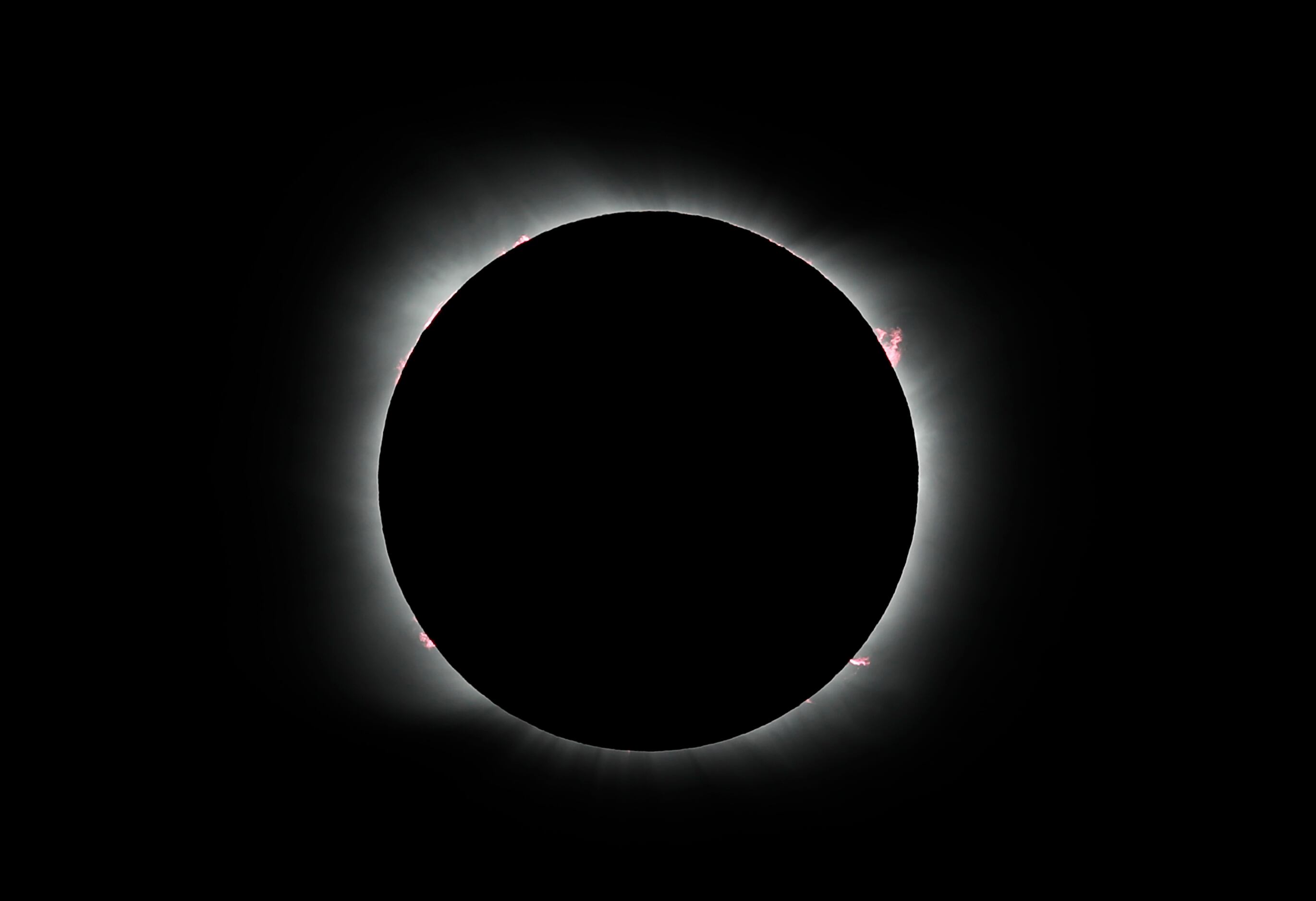 Una vez que el anillo de diamantes desaparezca y ya no haya luz solar directa, es cuando se puede quitar los anteojos para eclipses y mirar el eclipse total de forma segura a simple vista. Este momento también se llama segundo contacto. Durante la totalidad, es posible que los espectadores vean la cromosfera (una región de la atmósfera solar que se ve como un delgado círculo de color rosa alrededor de la Luna) y la corona (la atmósfera exterior del Sol, que se ve como rayos de luz blanca).