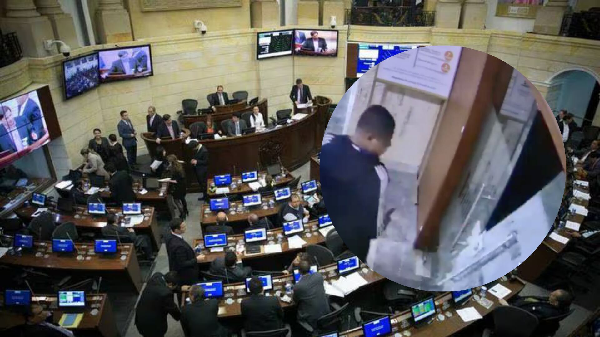 Las cámaras de seguridad del Congreso de la República dejan ver que a las 10:07 p.m. del martes 16 de abril la puerta de vidrio se venció. Posteriormente, a las 3:01 a.m., un trabajador de los servicios de seguridad del recinto se percata del estado de la puerta y la toca para verificar su estado. Esto provoca que la puerta caiga en pedazos.