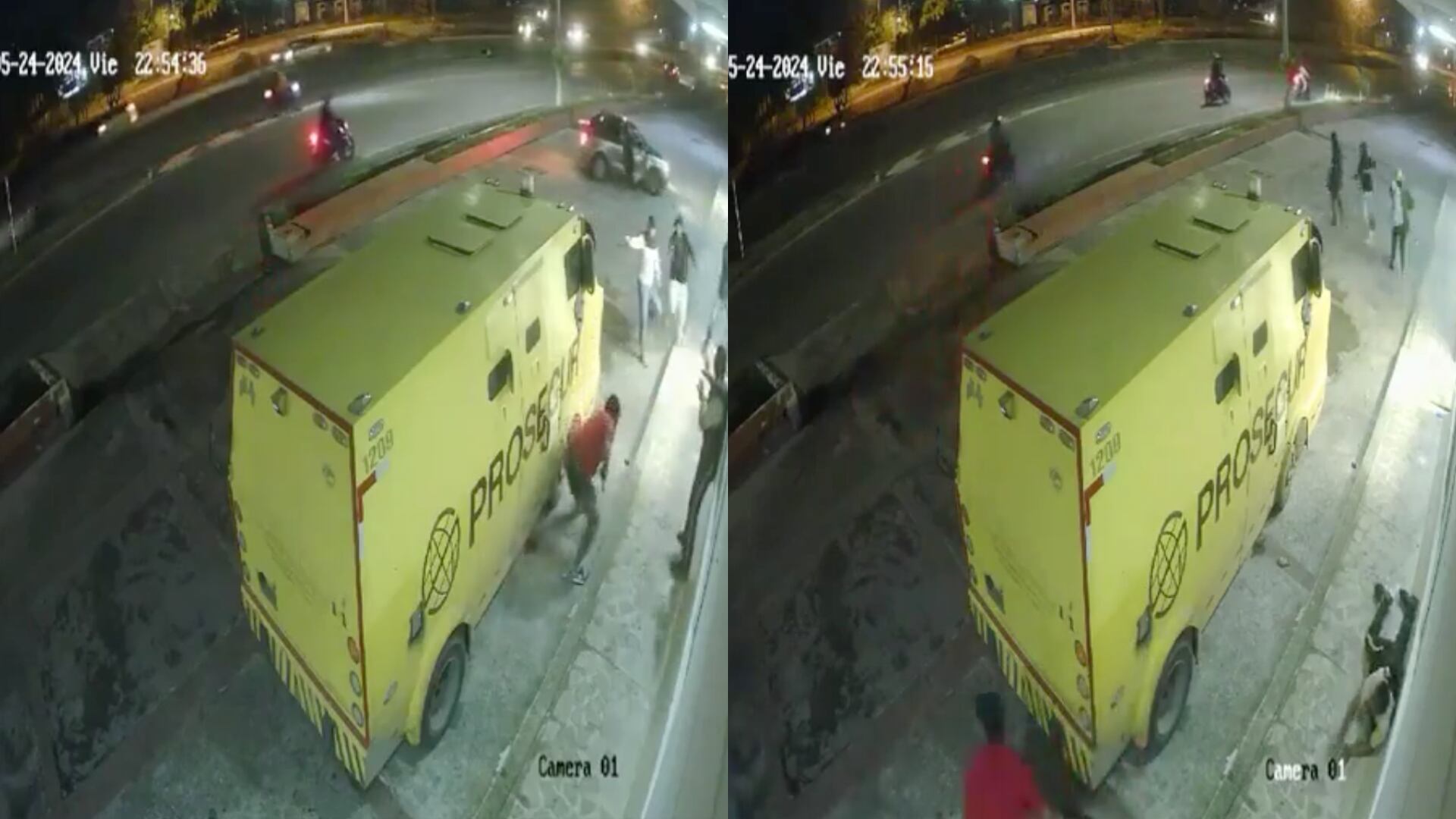 Por medio de una cámara de seguridad, se pudo observar que los ladrones llegaron con armas de fuego y amenazaron al hombre que cuidaba la puerta del cajero, incluso en los asaltantes, se logra ver que uno de ellos portaba un uniforme de la Policía Nacional. Por lo que se aprecia en el video, la empresa afectada sería Prosegur.