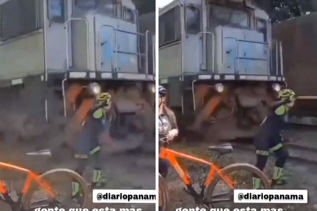 A pesar de que el maquinista accionó el claxon varias veces, los ciclistas no se alejaron y continuaron posando para fotos y videos.