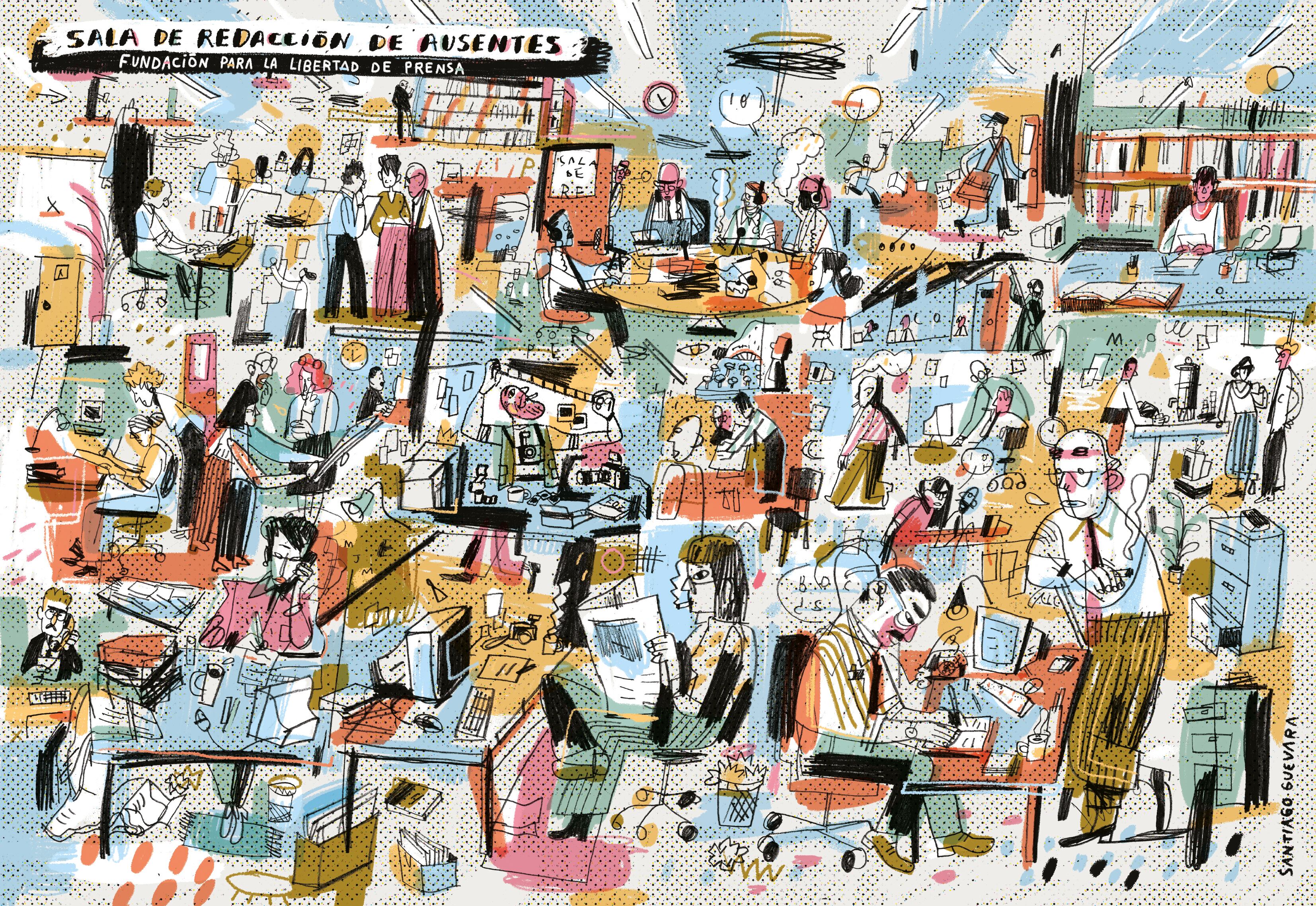 Sala de redacción de ausentes es un homenaje a los periodistas colombianos cuya labor ha sido silenciada por la violencia. Impulsada por la Fundación para la Libertad de Prensa, FLIP, esta campaña busca honrar la memoria de aquellos periodistas que, desde 1977 hasta hoy, han sido asesinados por realizar labores informativas en Colombia. El objetivo es revivir esas voces y explorar el impacto que tuvieron en la historia y la huella que sus ausencias dejaron en la sociedad colombiana.