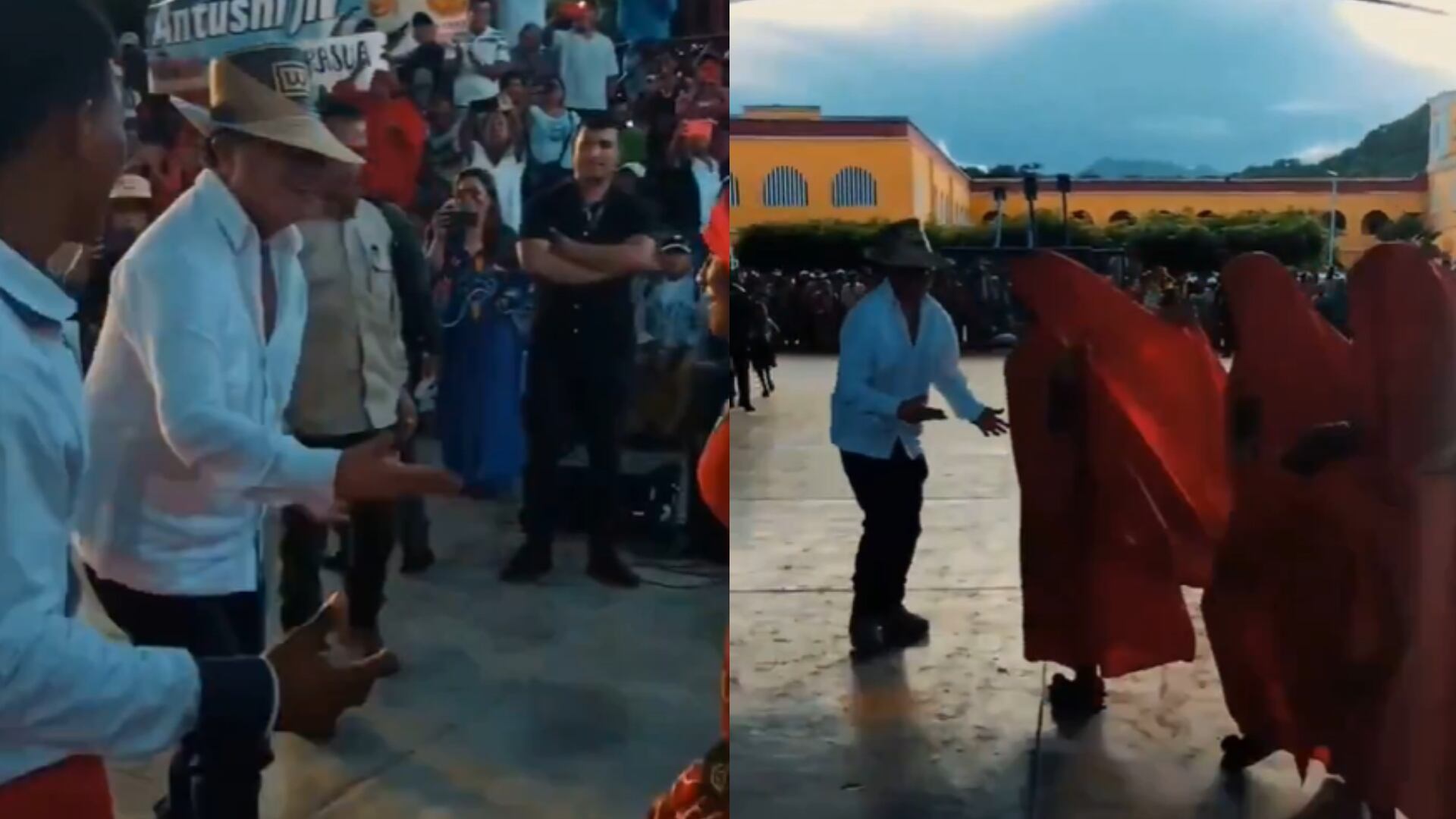 Sin embargo, lo más llamativo fue cuando el presidente fue recibido por toda la comunidad y lo pusieron a bailar música autóctona del departamento.