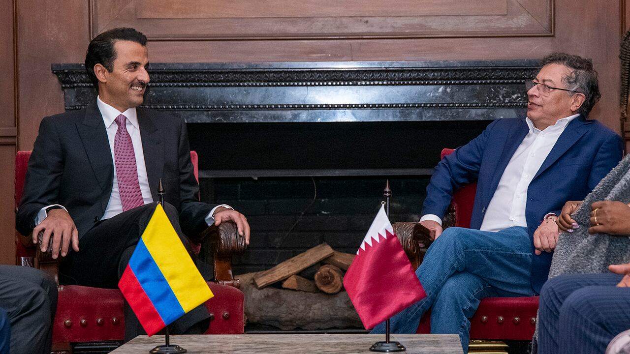 En la noche del miércoles 20 de noviembre, el presidente Gustavo Petro recibió en la Casa de Nariño al Jeque Tamim bin Hamad Al-Thani, Emir del Estado de Qatar. La bienvenida fue con todos los honores, en alfombra roja y con la música de la banda presidencial.