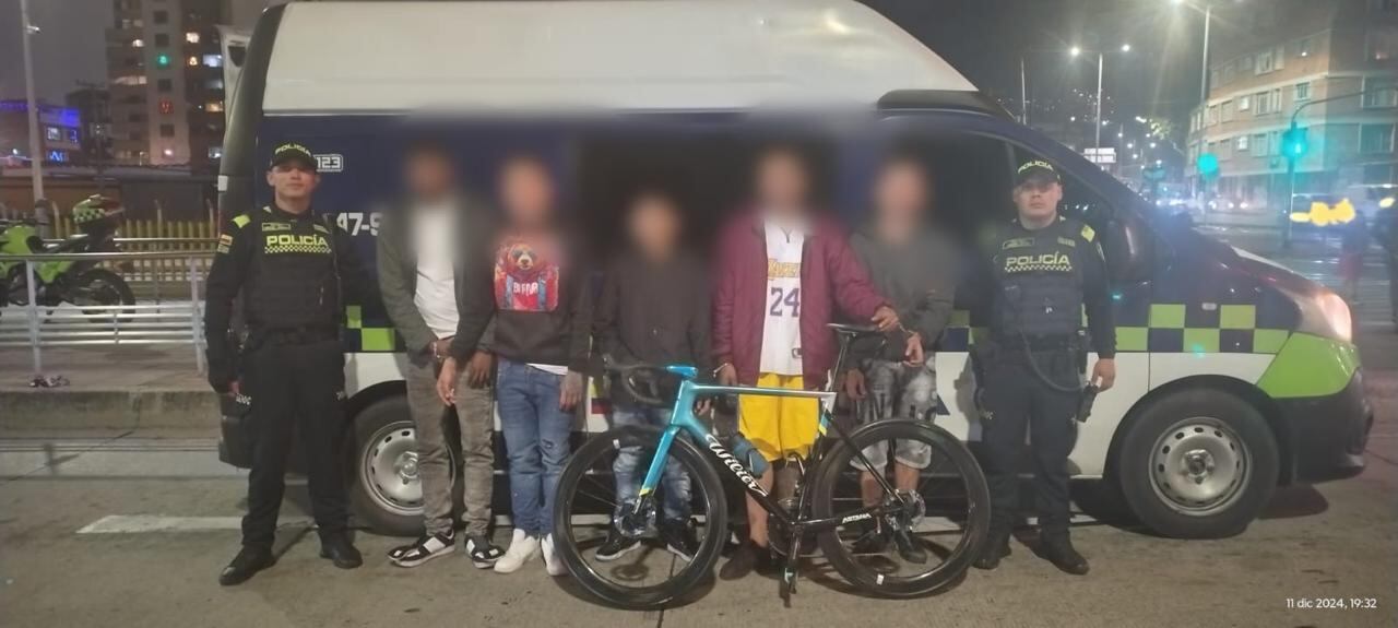 “De manera inmediata y gracias al trabajo articulado entre comunidad y Policía Nacional, se logra identificar e individualizar a cinco hombres, quienes minutos antes, mediante la modalidad de atraco y haciendo uso de armas cortopunzantes, intimidaron y despojaron de su bicicleta a un ciudadano”, advirtió la Policía Metropolitana de bogotá.
