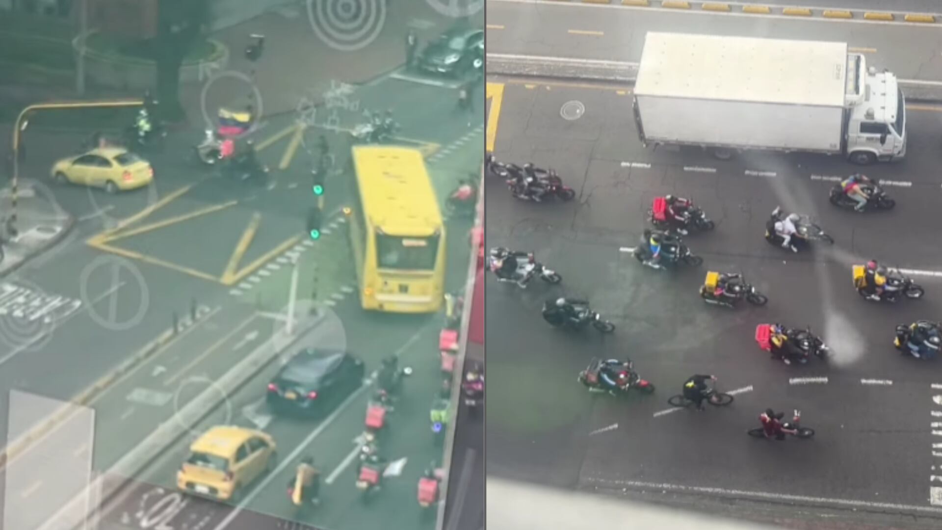 Justamente un grupo de domiciliarios decidió unirse, desde la lejanía, a las marchas convocadas por la oposición venezolana en pasado jueves 9 de enero, y lo hicieron tomándose una de las principales arterías viales de la capital colombiana, la carrera séptima, sitio en el que pasaron con sus motorizados pitando y elevando las banderas de su patria; marchas que fueron escoltados por funcionarios de la Secretaría de Movilidad.