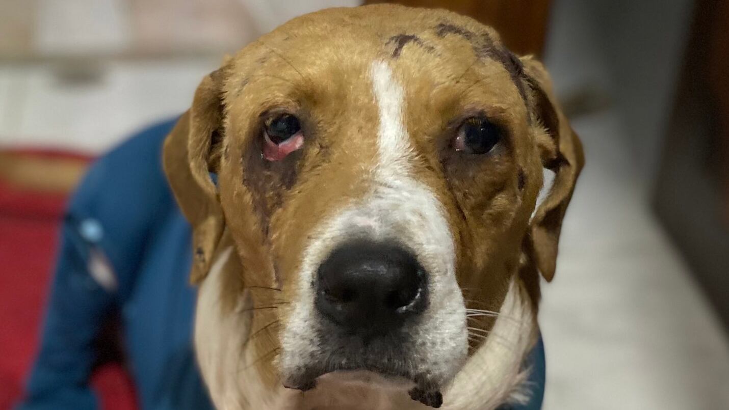 La historia de Ángel tuvo un comienzo trágico cuando un sujeto intolerante arremetió violentamente contra el animal atacándolo en repetidas ocasiones con un machete. Esto le generó heridas de gravedad porque le quitaron aproximadamente el 80% de su piel. Las lesiones, por supuesto, generaron grandes problemas en el animal que días después del ataque fue rescatado.