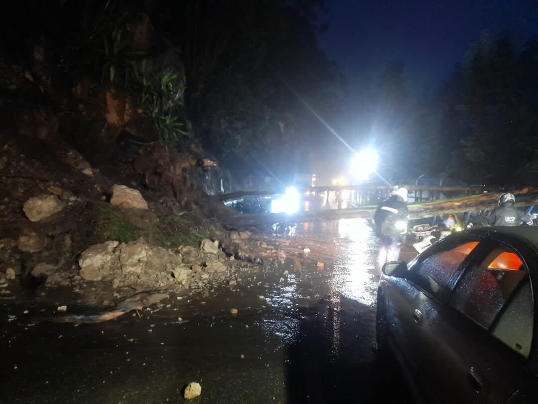 Las autoridades indicaron que las precipitaciones provocaron el movimiento de masa que cayó sobre la carretera y los organismos de socorro trabajan en la remoción.