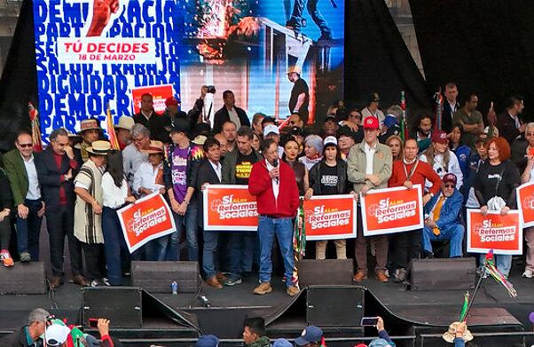 En la Plaza de Bolívar, tal y como lo aseguró, el presidente Gustavo Petro llegó para acompañar la marcha que convocó en defensa de las reformas del gobierno y la consulta popular. Poco antes de la 1:00 p.m., este 18 de marzo, pronunció su discurso, al tiempo que en la Comisión Séptima del Senado discutían el proyecto.