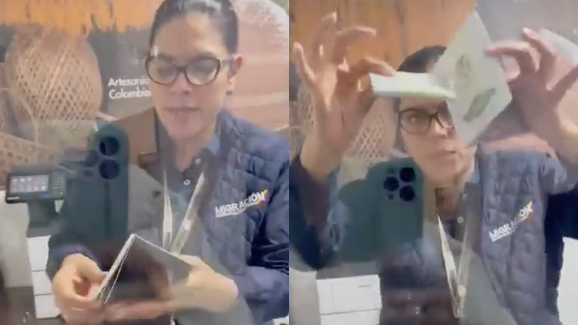 Ante esto, la agente de Migración Colombia toma el pasaporte y le muestra a la mujer que, efectivamente, está dañado, pero no cómo ella indica. El pasaporte estaba totalmente desprendido de la portada y estaba solamente agarrado por un hilo, algo que demuestra que estaba completamente dañado. Además, la agente le dice que para viajar tenía que gestionar un nuevo pasaporte, porque con ese era imposible hacer el viaje.