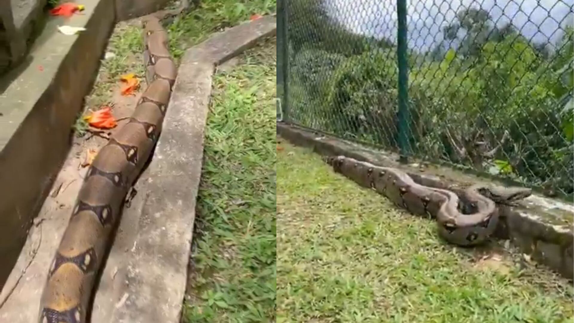 Este sábado 19 de abril un curioso hecho se presentó en un conjunto residencial de La Mesa, Cundinamarca, cuando algunos habitantes lograron registrar la llegada de dos boas constrictor dentro del recinto. La sorprendente especie se estaba desplazando en la zona boscosa del lugar.
